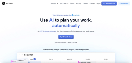 Motion is an AI-powered productivity tool that combines task management, calendar scheduling, and workflow automation. It dynamically prioritizes tasks and organizes schedules based on user goals, helping individuals and teams optimize their time and focus on what matters most.